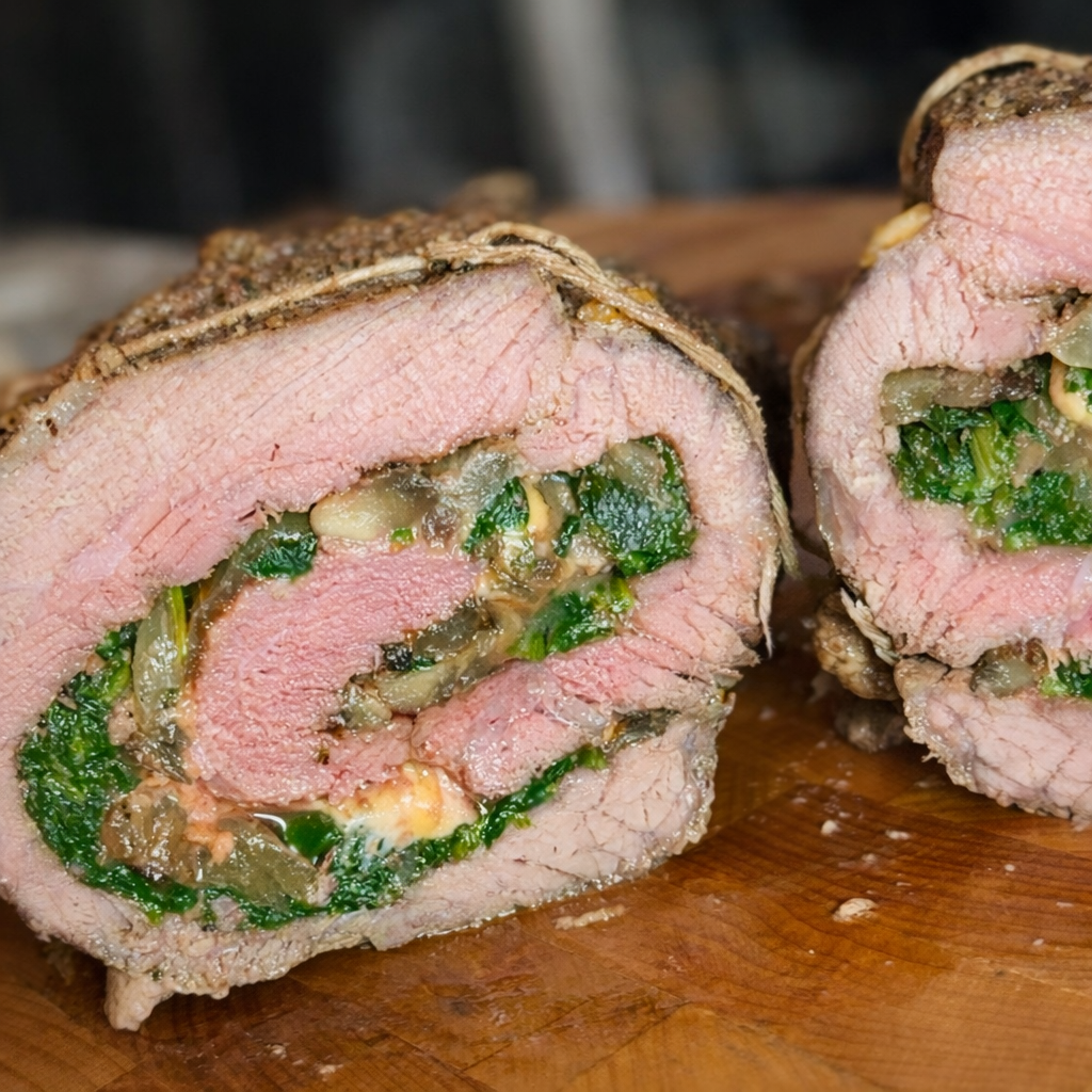 Cheesy Mushroom & Spinach Stuffed Inside Round Roast A hearty, comforting supper that...